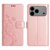 For iPhone 17 Pro Max Leather Wallet Case Butterfly Flower Imprinted Phone Cover with Strap