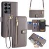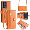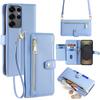 For Samsung Galaxy S25 Ultra Leather Case Zipper Pocket Wallet Phone Cover with 2 Straps