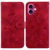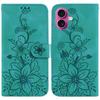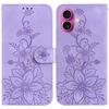 For iPhone 17 Stand Case Lily Flower Imprint Leather Phone Cover with Wrist Strap