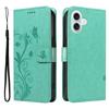For iPhone 17 PU Leather Cases Flower Pattern Wallet Stand Phone Cover with Strap