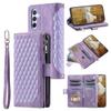 For Samsung Galaxy A17 Wallet Case Rhombus Stitching Line PU Leather Phone Cover with Wrist Strap