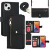 For iPhone 13 Mini Stand Case PU Leather Phone Cover with Straps/Zipper Wallet/Multiple Card Slots