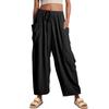 Spring and Summer Elastic Waist Pleated Mid Waist Straight Leg Pants, Loose Casual Cotton and Linen Cropped Pants