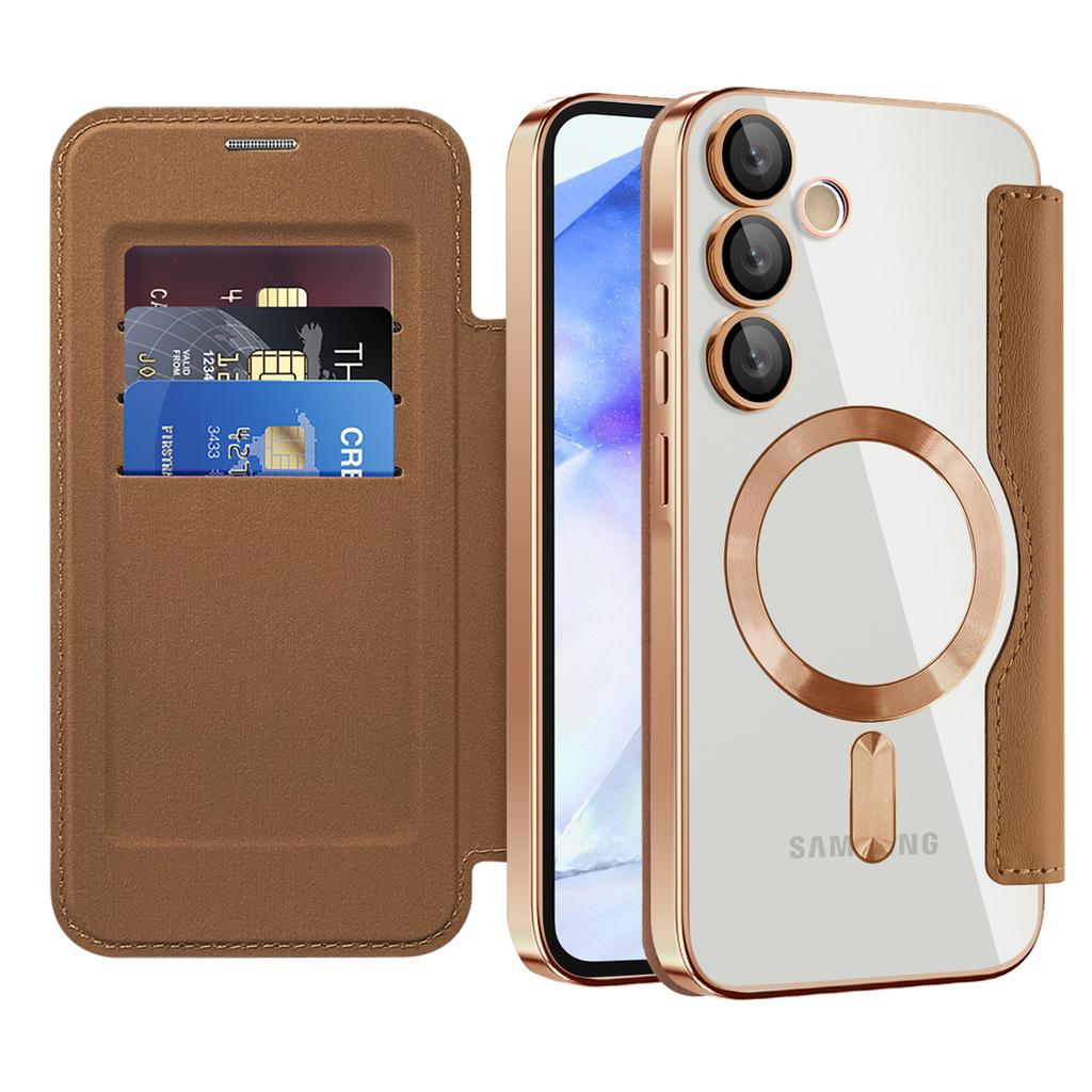 For Samsung Galaxy A55 5G Case Compatible with MagSafe Leather Phone Cover RFID Blocking