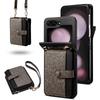 For Samsung Galaxy Z Flip6 5G Case Splicing Color Leather Phone Cover with Card Slot Holder Lanyard