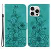 For iPhone 16 Pro Max Wallet Case PU Leather Phone Cover Flower Imprinted