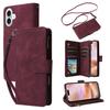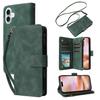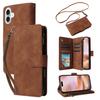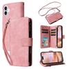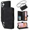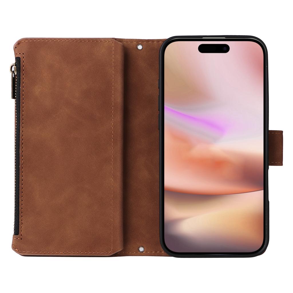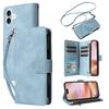For iPhone 16 Plus Case Zipper Pocket PU Leather Wallet Phone Stand Cover with Strap