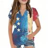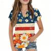 Summer Children's Casual Fashion Short-Sleeved V-Neck Independence Day Girls' Top
