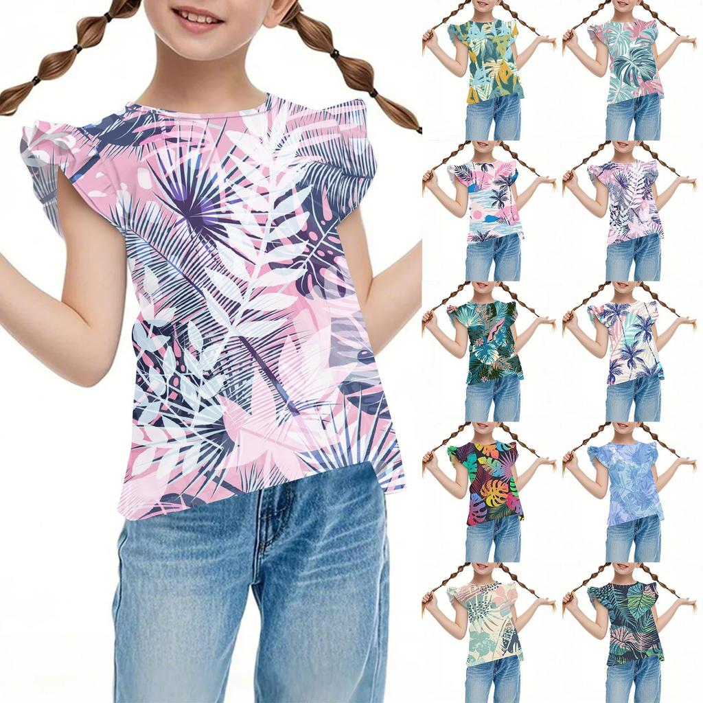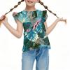 Children's Casual Short-Sleeved Pleated Cute Hawaiian Print Round-Neck Top