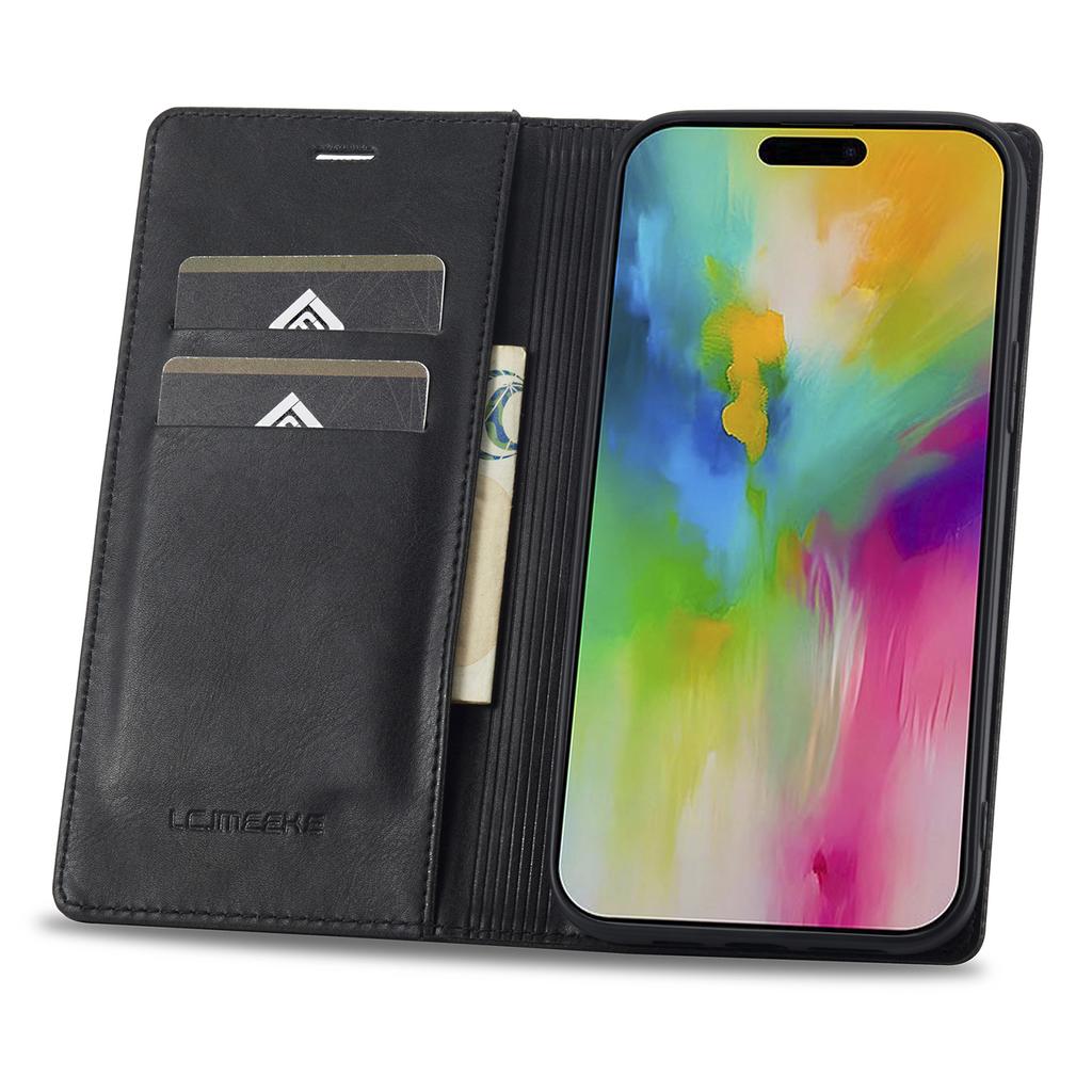 LC.IMEEKE For iPhone 16 Pro Max Leather Case RFID Blocking Card Slots Phone Cover
