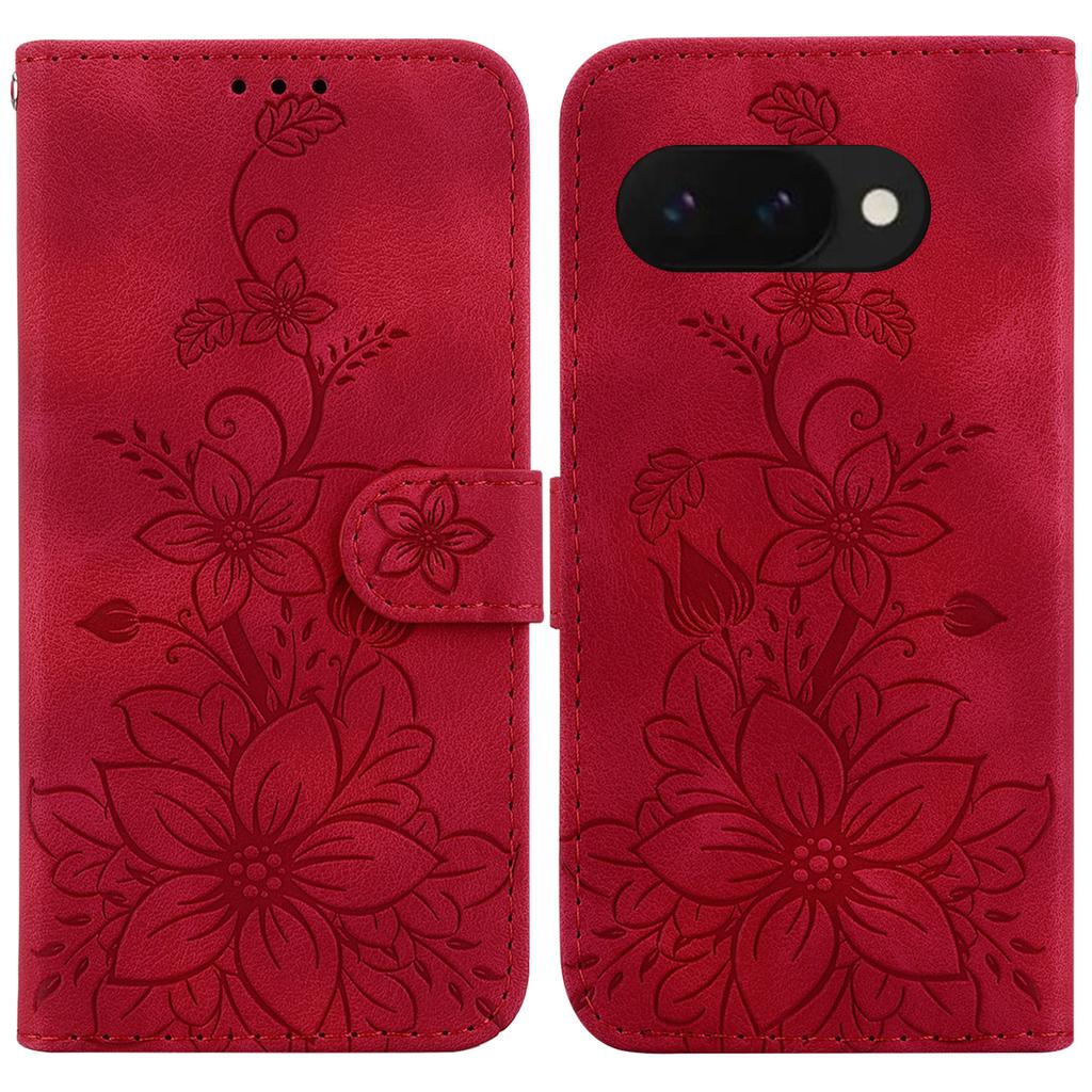 For Google Pixel 9a Case Lily Flower Imprint Leather Phone Cover with Stand