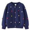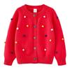 Hand-Crocheted Spring & Autumn Colorful Pom-Pom Girl's Cotton Cardigan