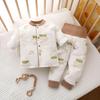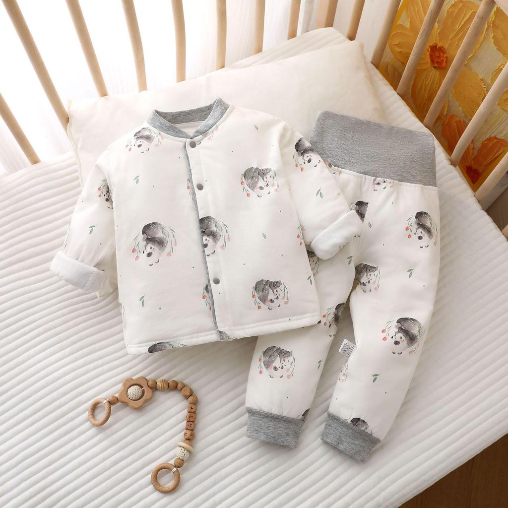 Ensure your little one stays cozy and warm during the cooler months with this delightful pajama set. Crafted from soft, high-quality cotton, these pajamas are designed to provide ultimate comfort and warmth. The set features long sleeves and a high-waist design that offers extra belly protection, making it ideal for chilly autumn and winter nights. Embrace both practicality and style with this adorable quilted pajama set, perfect for keeping your baby snug and happy.