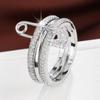 Connection Three Layers Pin Rings for Women CZ Cubic Zirconia Stackable Rings Stainless Steel New Year Gift Party Jewelry
