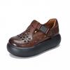 Johnature Genuine Leather Round Toe Thick Soled Women's Shoes Retro Versatile Breathable Hollow-out Platform Sandals