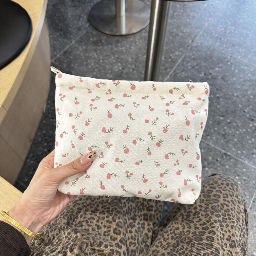 Handle Cute Little Flower Canvas Cosmetic Bag Women's Simple Portable Large-capacity Skin Care Product Handbag