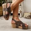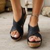 Women's Wedge Heel Sandals Summer Platform Wedge Heel Cross Large Size Women's Slippers Riveted Open-toed High-heeled Sandals
