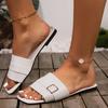 Large Size Flat Slippers Women's New One-character Metal Buckle Outside Wearing Sandals