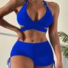 2024 Multicolor Cross Halter Bikini with Flat Leg Shorts for Women