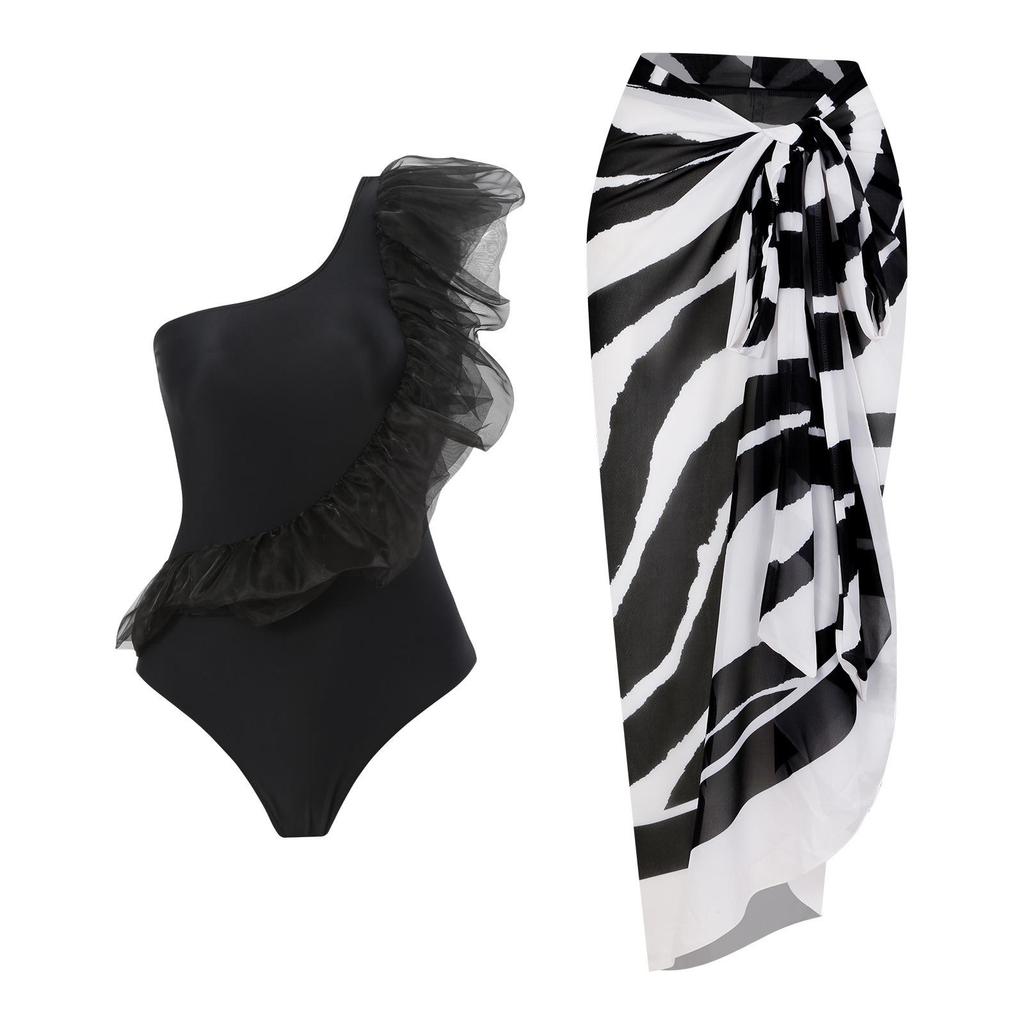 Discover the perfect blend of elegance and comfort with this women's one-shoulder ruffle one-piece swimsuit, featuring a chic skirt set. Crafted from high-quality polyester, this swimsuit offers a soft and durable fit. The eye-catching floral pattern adds a touch of femininity and style to your beach or poolside look. Designed for women who love a unique flair, the ruffled shoulder enhances its fashionable appeal while the accompanying skirt provides versatile wearability. Ideal for those seeking a stylish yet functional swimwear option for their next getaway.