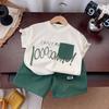 Children's Summer Set Short Sleeved Contrasting Printed T-shirt for Boys and Girls Round Neck Casual Clothes Two-piece Set Trendy