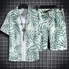 Hawaiian Beach Flower Shirt Men's Hong Kong Style Retro Style Short Sleeved Shirt Set Casual Two-piece Set