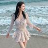 New One-piece Cover-up Dressh V-neck Slim Conservative Floral Print Hot Spring Vacation Swimwear Two-piece Two-piece Set