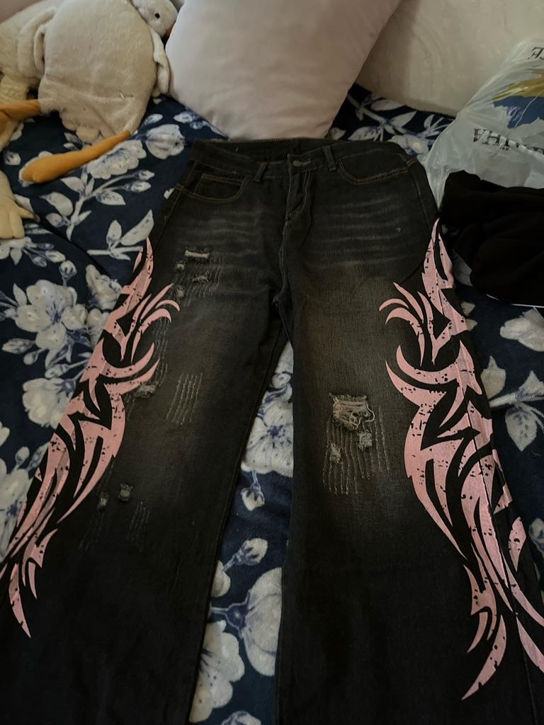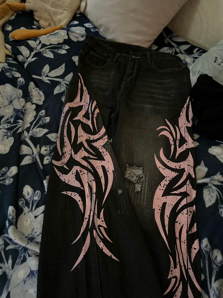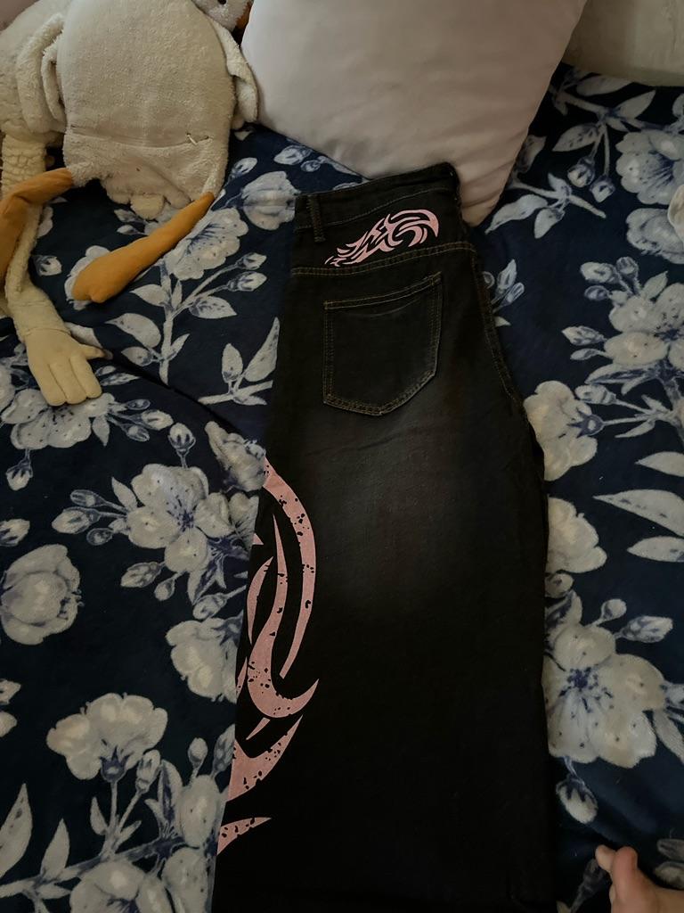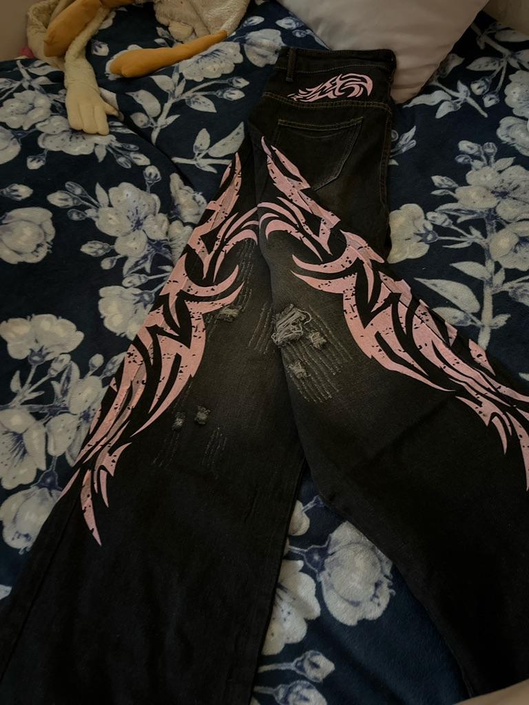 Cross Border Fashion Brand Jaded London American Retro Pattern Printed Washed Jeans Hot Girls Wide Leg Pants
