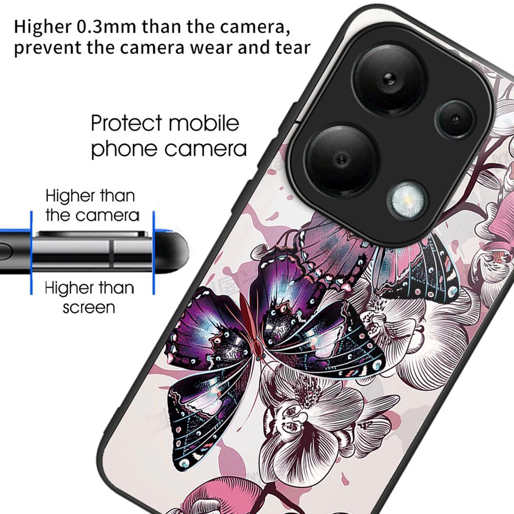 For Xiaomi Redmi Note 13 Pro 4G/Poco M6 Pro 4G Phone Case TPU+Tempered Glass Cover Pattern Print