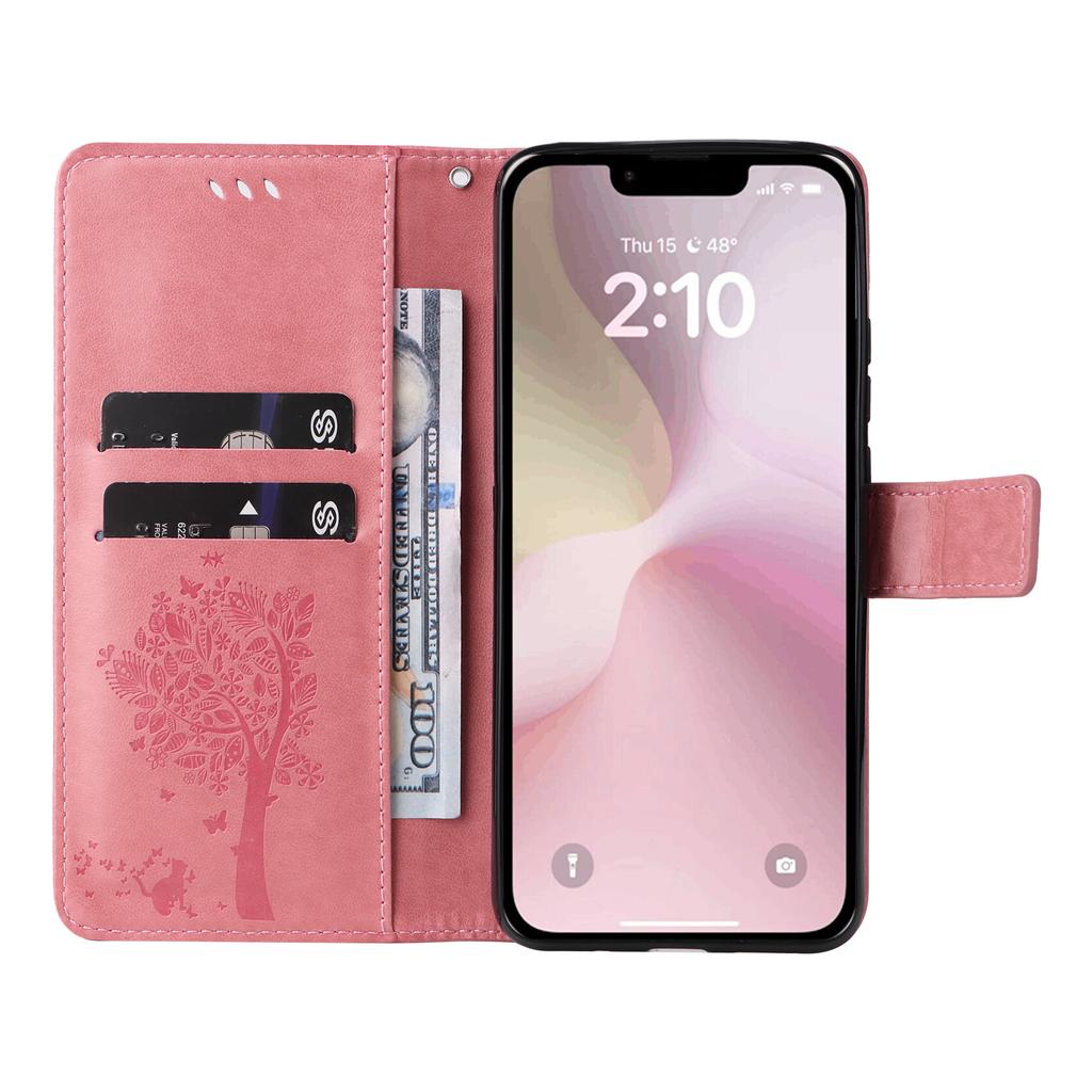 For iPhone 16e Phone Case with Stand Cat Tree Pattern Leather Wallet Mobile Cover