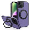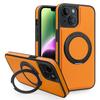 For iPhone 14 Case with Ring Kickstand Compatible with MagSafe PU Leather Back Cover