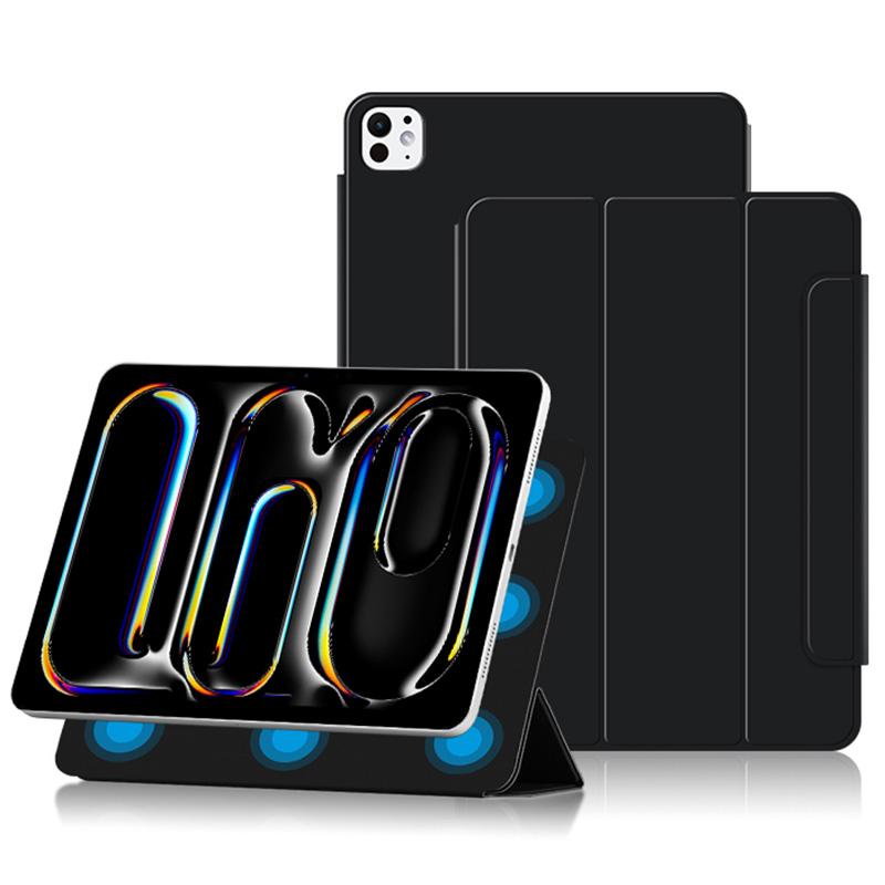 For iPad Pro 11 (2025)/11 (2024) Case Magnetic Attachment PU Leather Drop-Proof Tablet Cover with Tri-Fold Stand