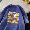 Seaside Sunset Printed T-shirt Coconut Tree Retro Washed Vintage T-shirt Loose Casual T-shirt for Men and Women T Shirt