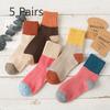 5 Pairs of Woolen Socks for Women In Winter, Thickened and Warm Mid-calf Socks, Autumn and Winter Style with Fleece Loop Socks, School Style