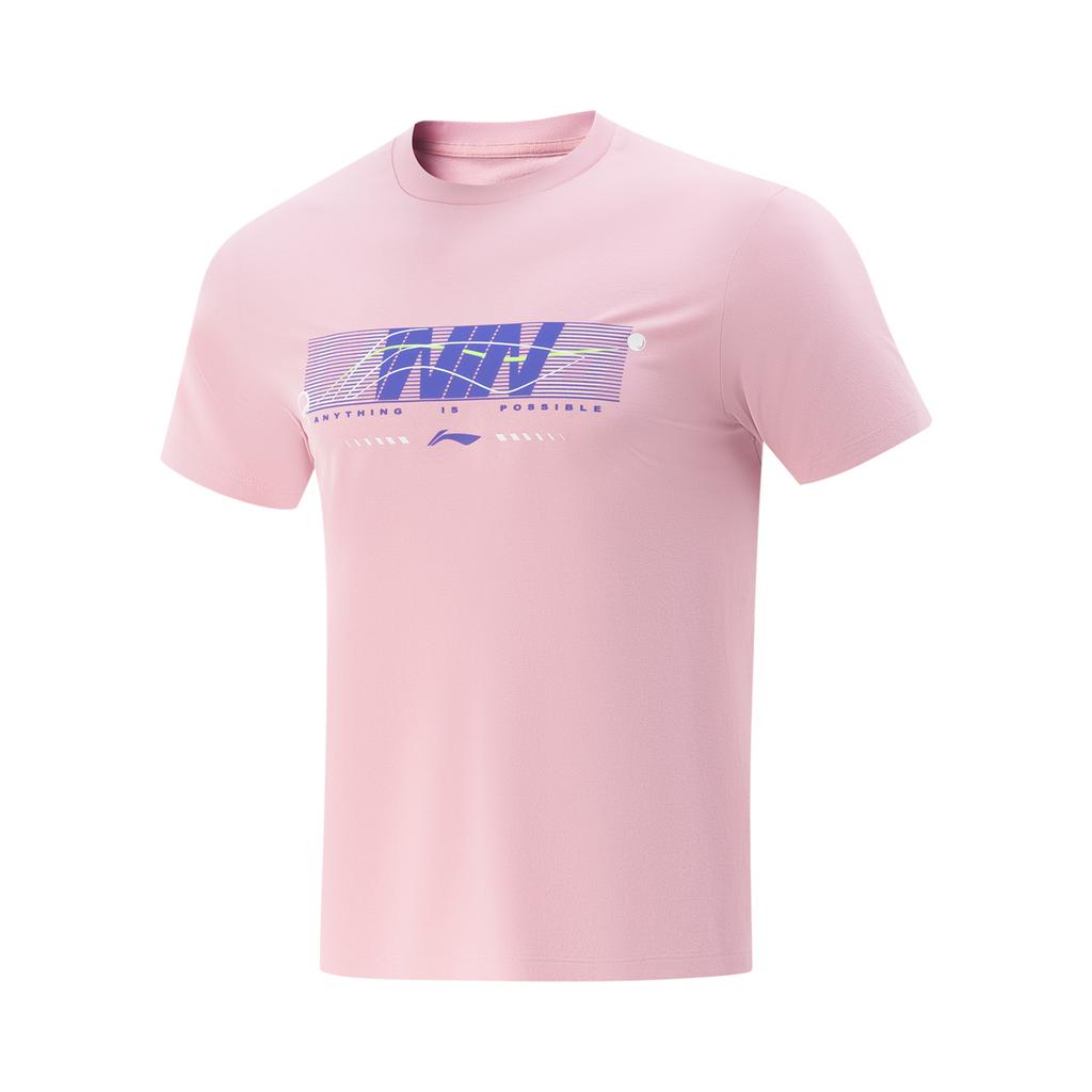 Li Ning Table Tennis Series Letter Round Neck Quick-Dry Breathable Versatile Short Sleeve T-Shirt Unisex Tops Light-Pink AHSV613-3