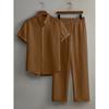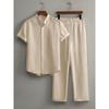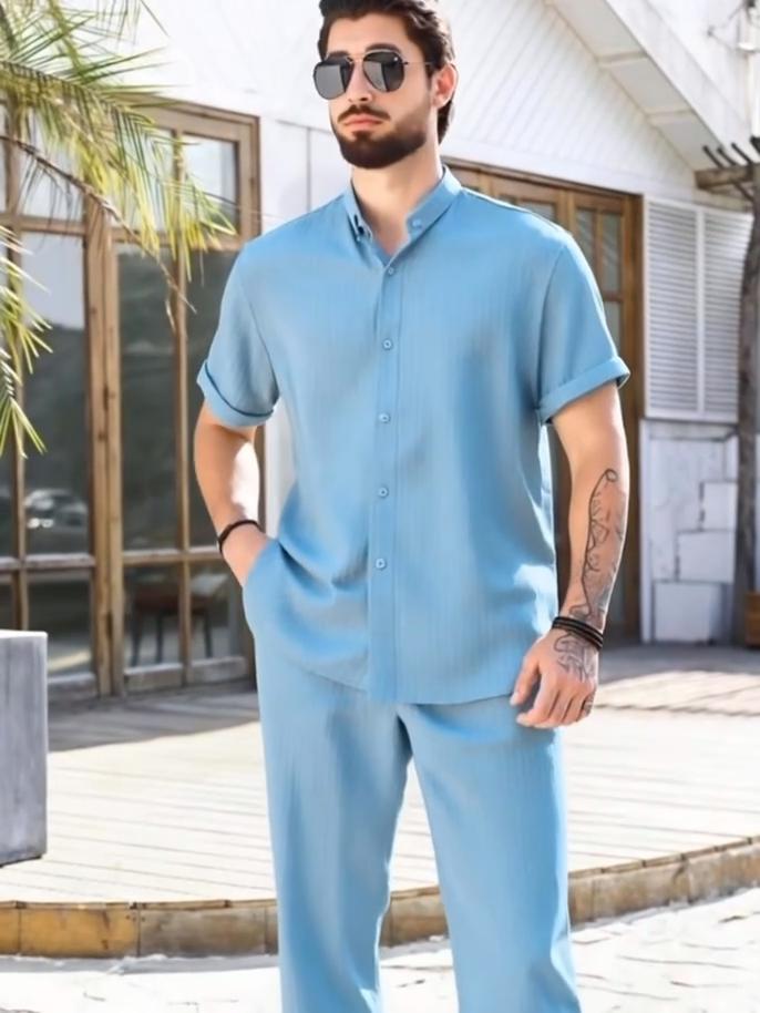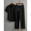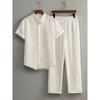 Men's Button Textured Casual Striped Short Sleeved Shirt and Elastic Straight Leg Pants Set, 2-piece Set