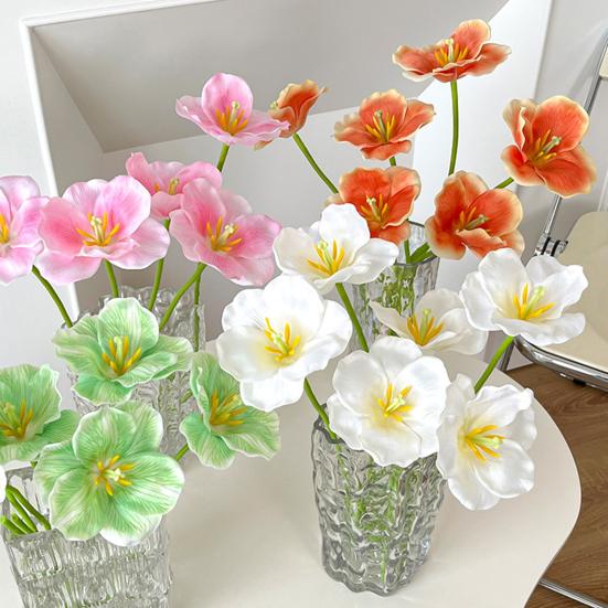 Enhance your home decor with our simulated tulip stems, perfect for various occasions such as spring arrangements, Easter celebrations, weddings, and more. These artificial tulips boast vibrant colors that won't fade over time, ensuring lasting elegance in any setting. Crafted with realistic touch petals and bendable stems, these fake tulips are easy to arrange and customize to suit your decor needs. Say goodbye to the hassle of watering and pruning – our artificial tulips offer effortless beauty year-round without any maintenance required.