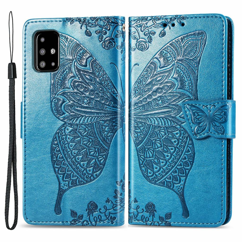 For Samsung Galaxy A51 4G SM-A515 Imprinted Butterfly Pattern Anti-scratch Phone Case PU Leather Stand Wallet Cover with Strap