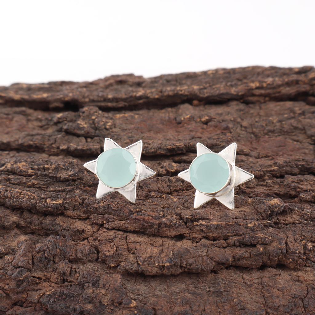 Aqua Chalcedony Earrings Gemstone Jewelry, 925 Solid Sterling Silver Earrings, Handmade Jewelry Birthstone Earrings, Gift For Him