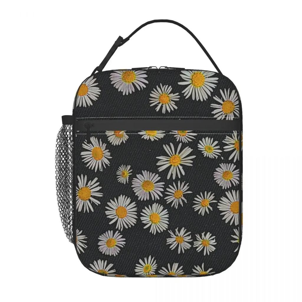 Daisies Lunch Bag For Women Xmas Flower Lunch Box Kawaii Picnic Cooler Bag Portable Oxford Thermal Lunch Bags