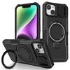 PC+TPU Phone Case for iPhone 15 Compatible with MagSafe Kickstand Cover with Sliding Lens Guard