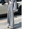 Women's Gray Sports High Waist Hanging Loose Slimming Straight Leg Wide Leg Pants American Sweatpants
