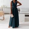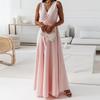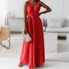 Elevate your evening look with this stunning V-neck long dress, perfect for summer occasions. Crafted from high-quality polyester with a four-sided stretch, it offers both comfort and a flattering fit. The elegant solid color design and lace-up detail make it a versatile choice, ideal for any sophisticated event or gathering.