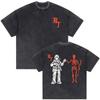 Retro Skeleton Cool and Cool Pattern T-shirt Washed and Distressed Men's and Women's Casual Loose T-shirt Street Clothing