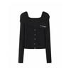 Women's Autumn 2024 European Square Neck Off-the-Shoulder Slim Knit Sweater Top