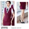 This elegant professional three-piece suit for women is designed for the autumn season, offering a polished and versatile look suitable for both beauticians and hotel receptionists. It includes a stylish vest crafted from premium polyester, ensuring both comfort and durability. The ensemble is complemented by sophisticated jewelry that adds a touch of elegance to the outfit. The polyester construction of the suit ensures a perfect blend of style and functionality, making it ideal for professionals aiming to make a great impression.