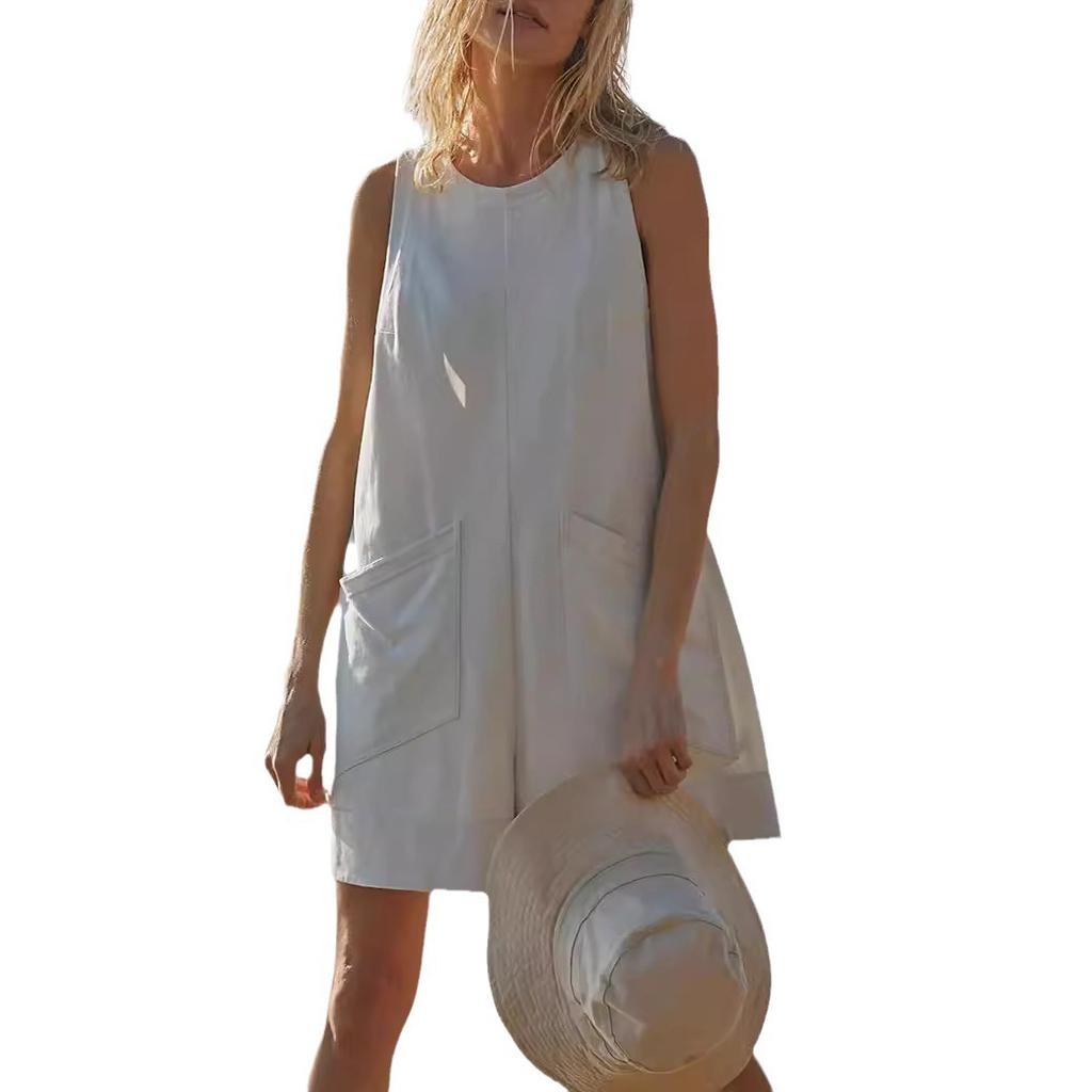 Casual Jumpsuit Summer Loose Sleeveless Pocket Body Shorts Women