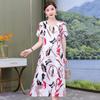 This elegant summer dress is designed specifically for middle-aged and elderly women, offering both style and comfort. Made from a luxurious blend of cotton and silk, it ensures a soft, breathable feel perfect for warmer days. The dress features a beautiful print and includes a tummy control element for a flattering fit. Ideal for a variety of occasions, it combines timeless design with practicality, catering to both fashion and function.