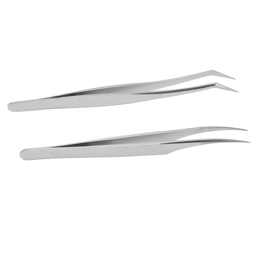 2pcs Eyelash Extension Tweezers Set Firmly Clamp Curved Tip Stainless Steel False Eyelashes Applicator Tool