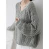 Women's French V-Neck Sweater: Early Spring To Winter Style, Hollow Knit, Fashionable Temperament Top